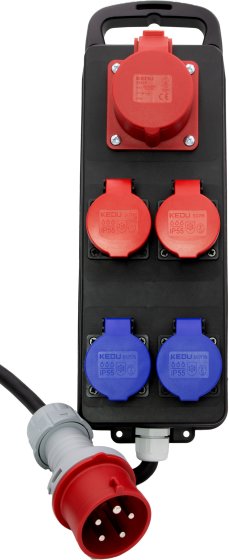 Distributore di corrente portatile BSV P CEE 400V/16A, 1x presa CEE, 2x prese T25 + 2x prese T23, spina CEE, cavo 2m H07RN-F 5G2,5 nero *CH*