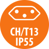 - Presa di corrente a prova di spruzzi d’acqua con coperchio a chiusura automatica.
