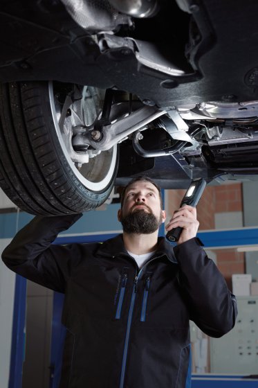 Questa lampada manuale a LED, pratica ma estremamente robusta, è estremamente versatile. È perfetta per un uso flessibile grazie ai magneti integrati, ai due ganci rotanti a 360° e alla base articolata. Grazie ai livelli di commutazione (spot-100%-50%) dei LED SMD superluminosi, la lampada da officina a LED brilla fino a 10 ore. La luce di ispezione si ricarica tramite l'interfaccia USB C e il cavo di ricarica da USB A a USB C in dotazione. La lampada portatile per officina convince anche per le seguenti caratteristiche: